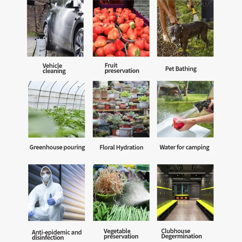 The pressurized pump ensures a steady spray, and the adjustable shower head lets you control water flow for quick, efficient rinsing.
