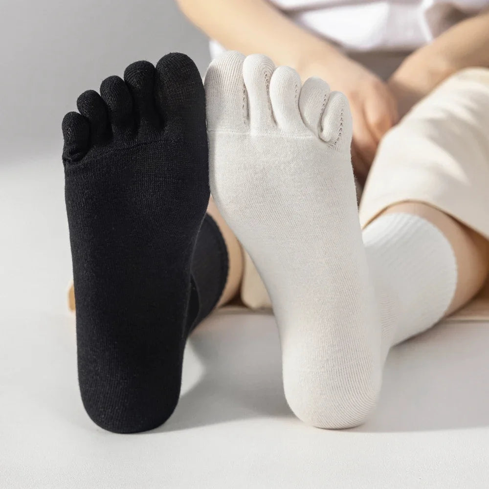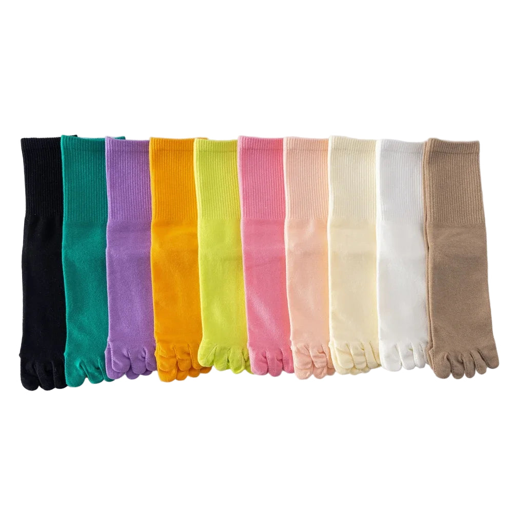 Designed for yoga enthusiasts and active women, these high-quality five-finger crew socks offer enhanced flexibility, breathability, and comfort.