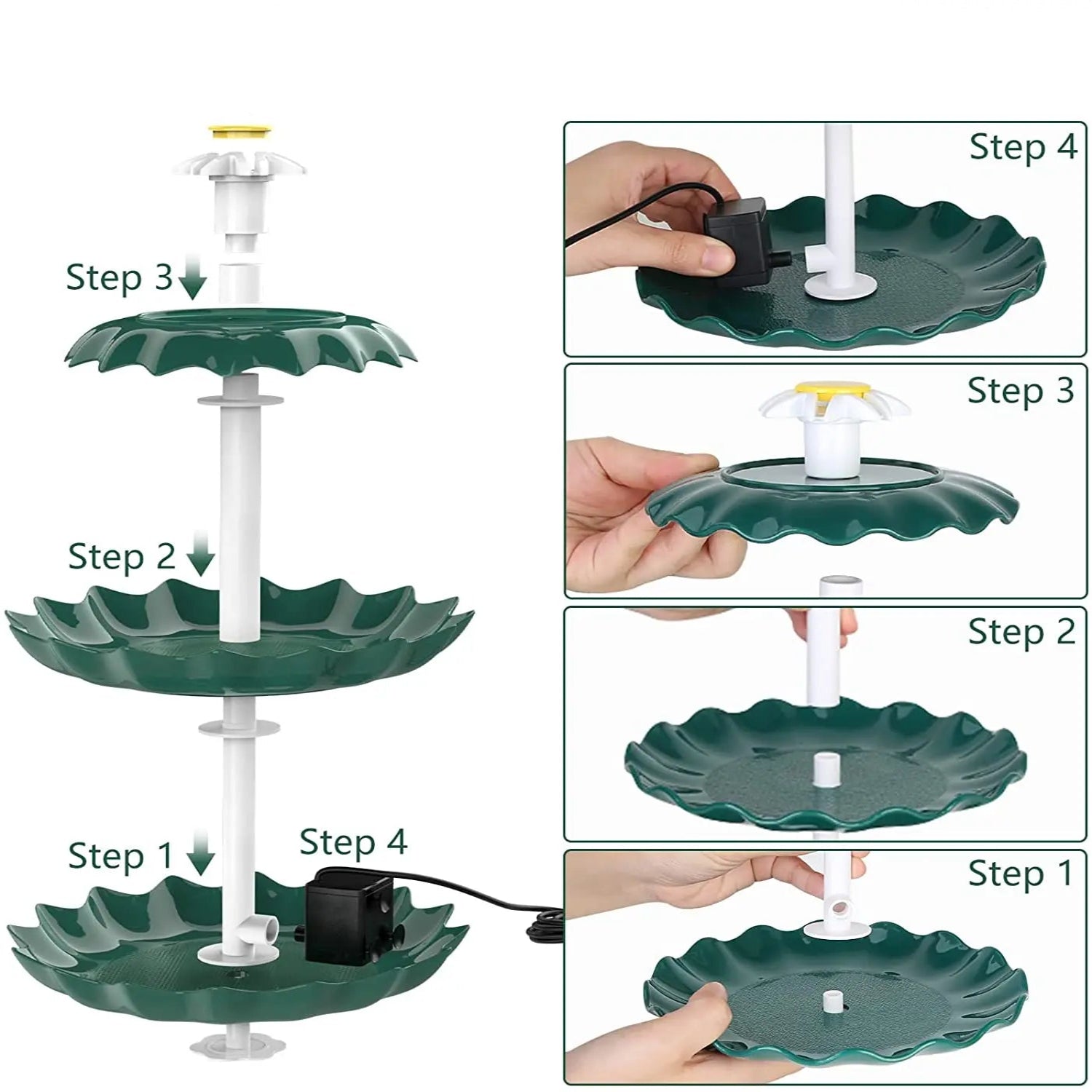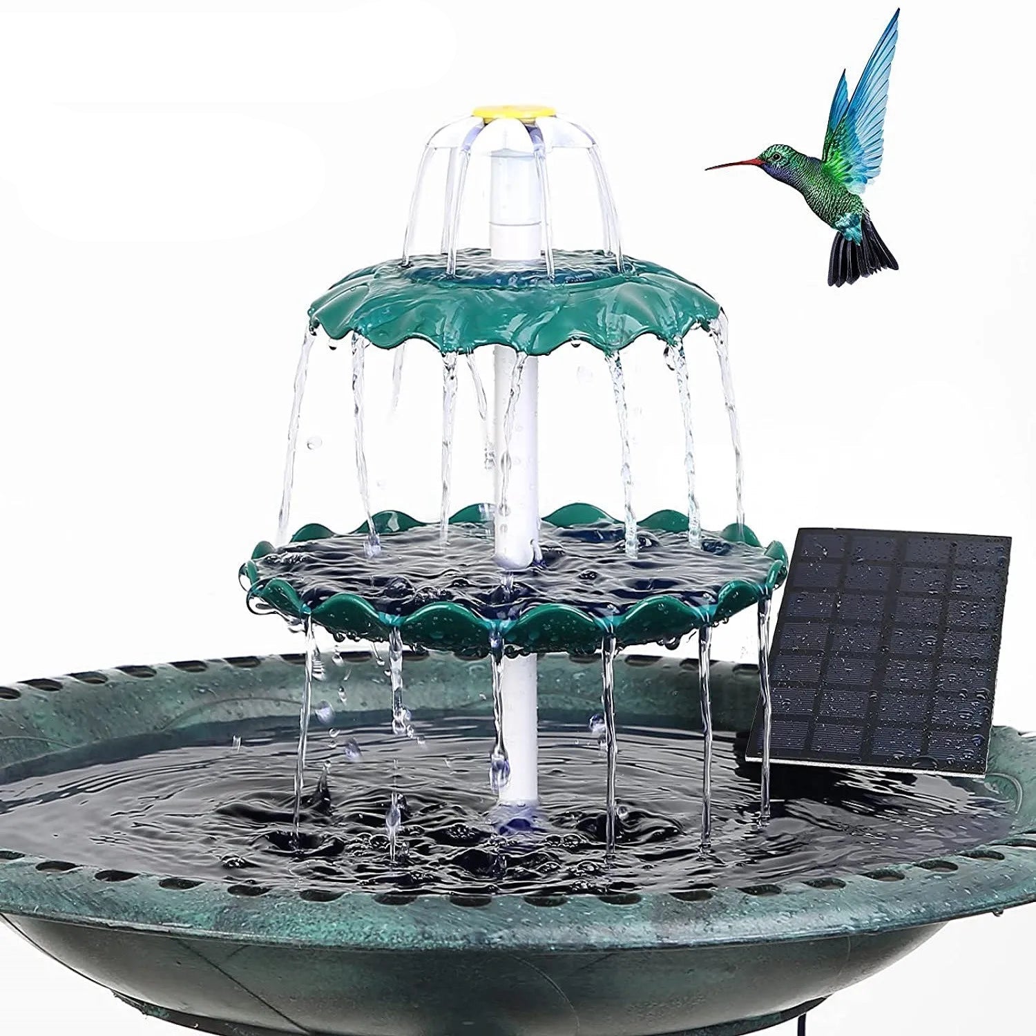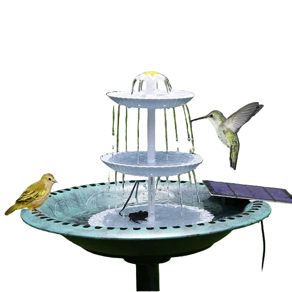 Bring life and charm to your garden with the 3-tiered bird bath, featuring a 2.5W solar pump for a gentle fountain effect.