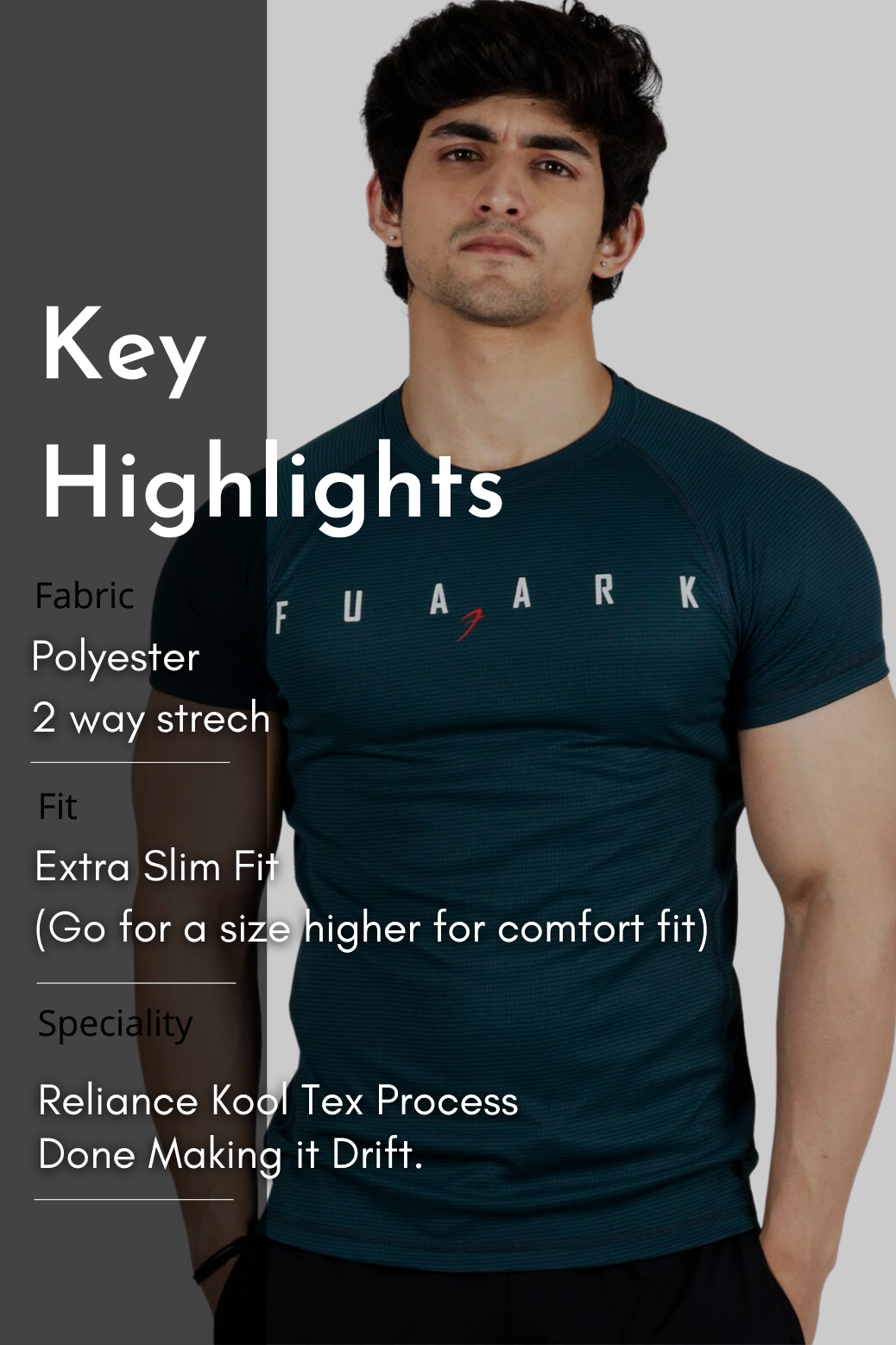 Make a statement with the Bottle Green Snugg (Extra Slim) Fit checks T-shirt, offering both style and performance. Featuring an extra slim fit, this t-shirt contours to your body, providing a sleek, athletic look. The raglan sleeves highlight your shoulders and traps, giving you a more defined physique. Designed with side panels for full range of motion, this shirt is perfect for any activity where comfort and flexibility are key. The rich bottle green color adds a unique, earthy touch to your wardrobe, standing out in the best way possible. Whether you're working out or stepping out, this t-shirt delivers both performance and fashion in one.