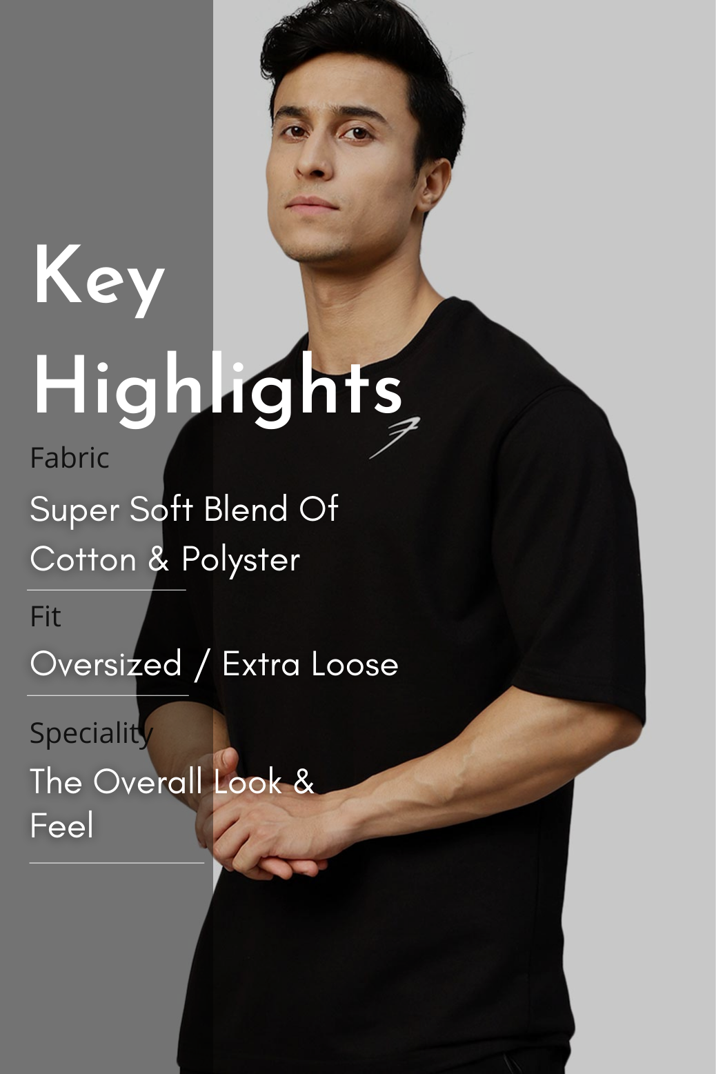 Embrace the ultimate in comfort and style with the Black Oversized Loose Fit T-shirt. Featuring a loose oversized fit, this shirt drapes effortlessly over the body, offering a relaxed look that pairs well with any casual or athleisure outfit. The sleeves reaching the elbow contribute to its easygoing aesthetic, while the average torso length provides the perfect balance of coverage and comfort. Whether you're lounging at home, out for a casual day, or styling it for a trendy look, the classic black color ensures it goes with everything in your wardrobe. Crafted from soft and breathable fabric, this oversized tee guarantees all-day comfort, making it a go-to essential for any wardrobe.