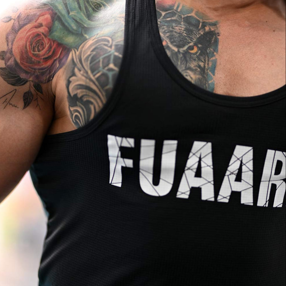 Stay cool and comfortable with the Fuaark Classic Stringer in White. Designed with a regular fit, this tank offers a breathable and stylish fit for any workout. The checks mesh fabric promotes ventilation, allowing you to stay fresh even during intense physical activity. The thin shoulder straps are placed just above the traps, ensuring full range of motion while showing off your muscular build. Whether you're lifting weights, running, or relaxing, this classic white stringer provides the perfect balance of style and performance.