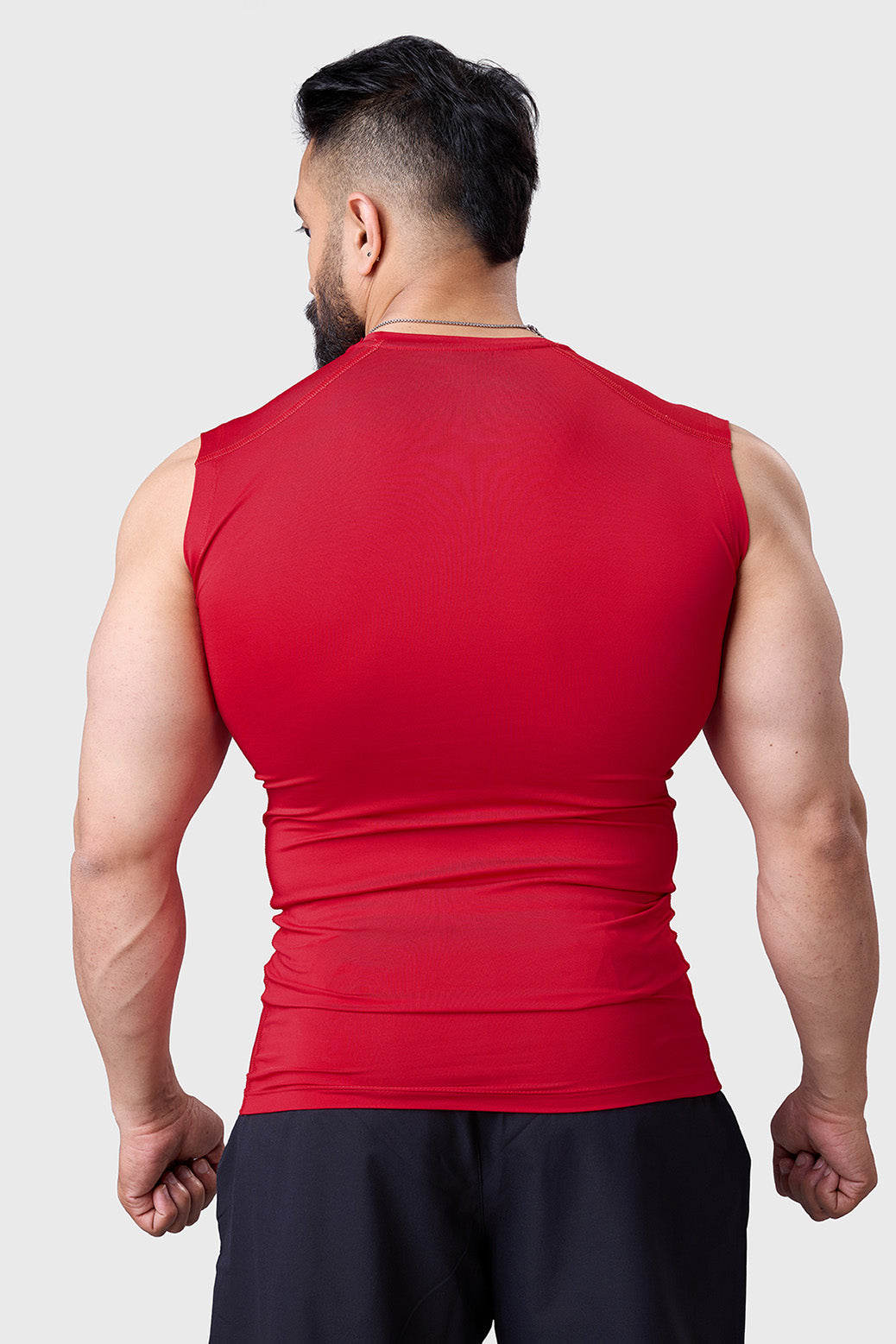 Designed for active men, this red compression sleeveless tank offers targeted muscle support and enhanced blood flow during intense workouts. Its lightweight, breathable fabric ensures optimal comfort and moisture management, helping you stay cool and dry. Perfect for sports and training, this tank combines performance-driven design with a sleek, athletic fit to boost your endurance and recovery.