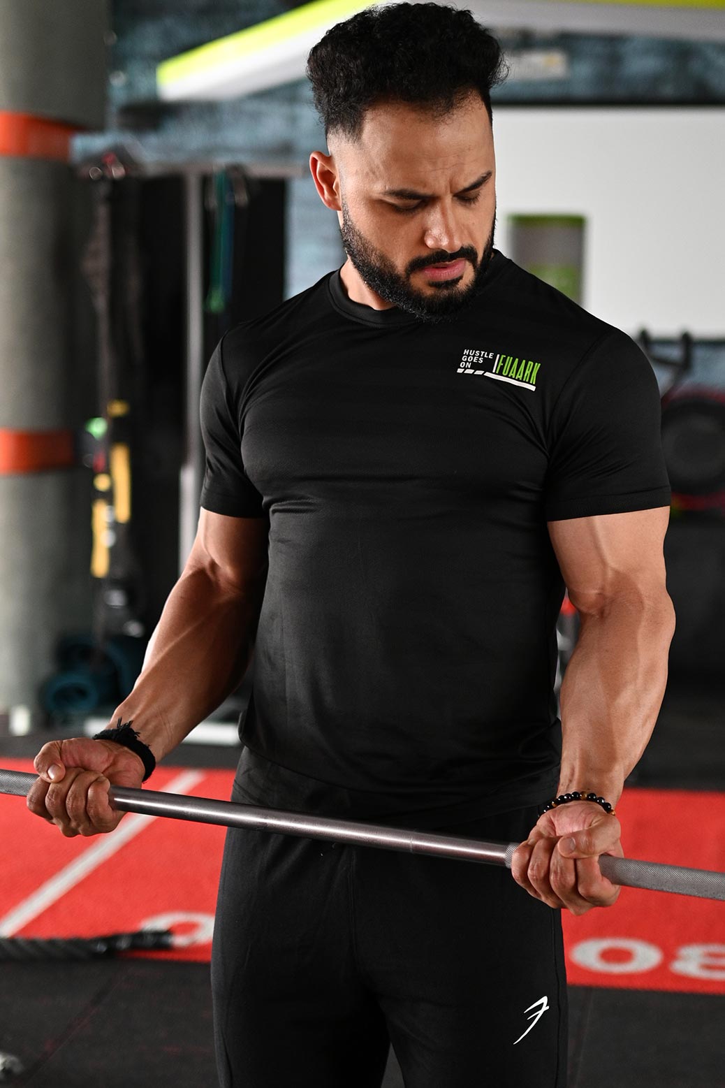 Elevate your casual style with the Black Slim Fit Emblem T-shirt. Crafted for a sleek, modern look, this t-shirt is perfect for those who prefer a slim, tailored fit. Featuring an average torso length, it provides a flattering silhouette that complements any body type. The crew cut sleeves add to the timeless appeal, while the cool-to-the-touch fabric keeps you comfortable throughout the day. The shirt features a stylish emblem design, adding a touch of sophistication to your everyday outfits. Whether you're heading out for a casual hangout or a laid-back evening, the Black Slim Fit Emblem T-shirt ensures you look sharp and stay comfortable.