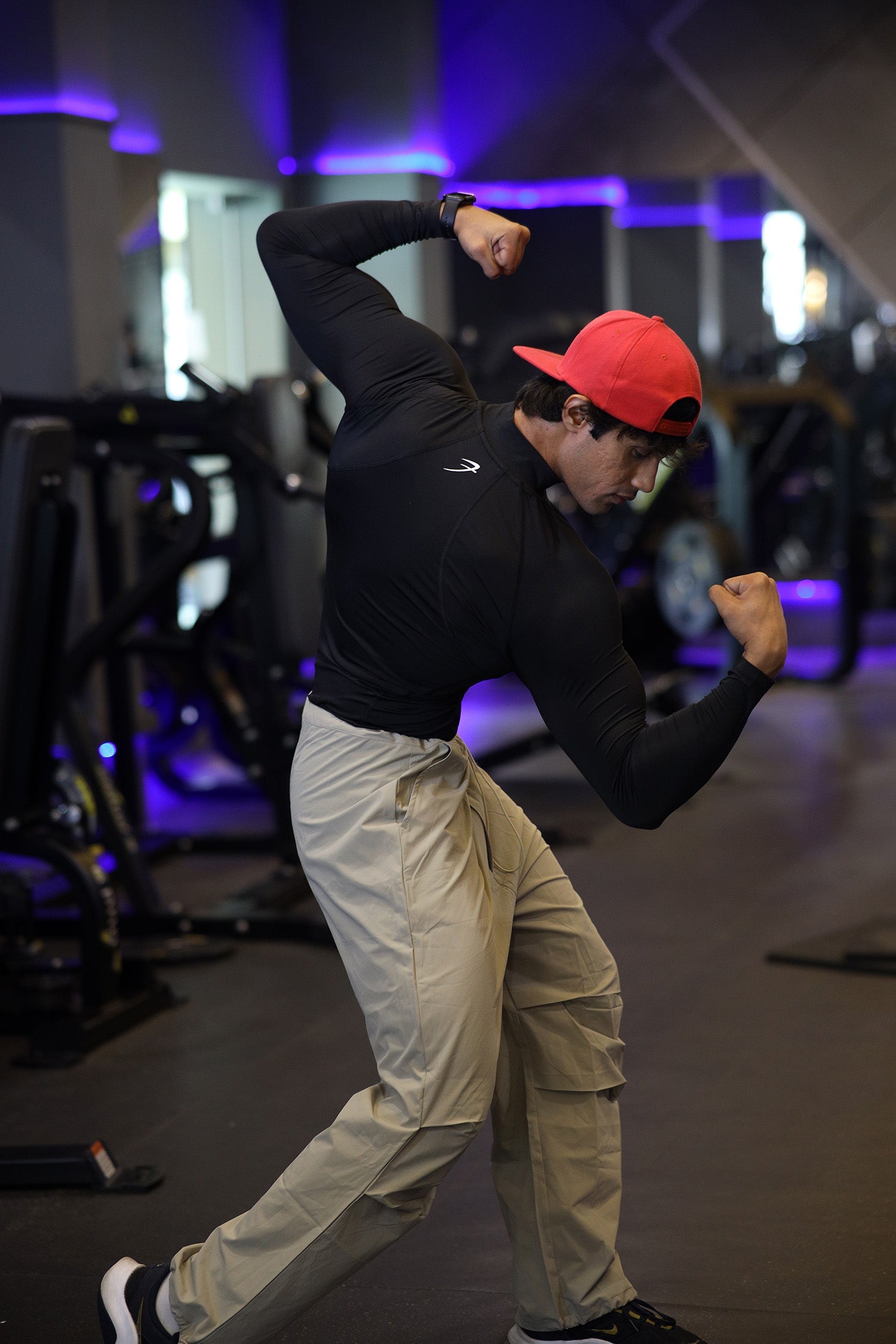 Introducing our High Neck Compression Full Sleeves T-Shirt in Black, the ultimate blend of style and performance for your active lifestyle. Crafted from a premium fabric mix of 90% breathable polyester and 10% spandex, this t-shirt is designed to provide a body-hugging fit that enhances your physique while ensuring ultimate comfort during workouts.