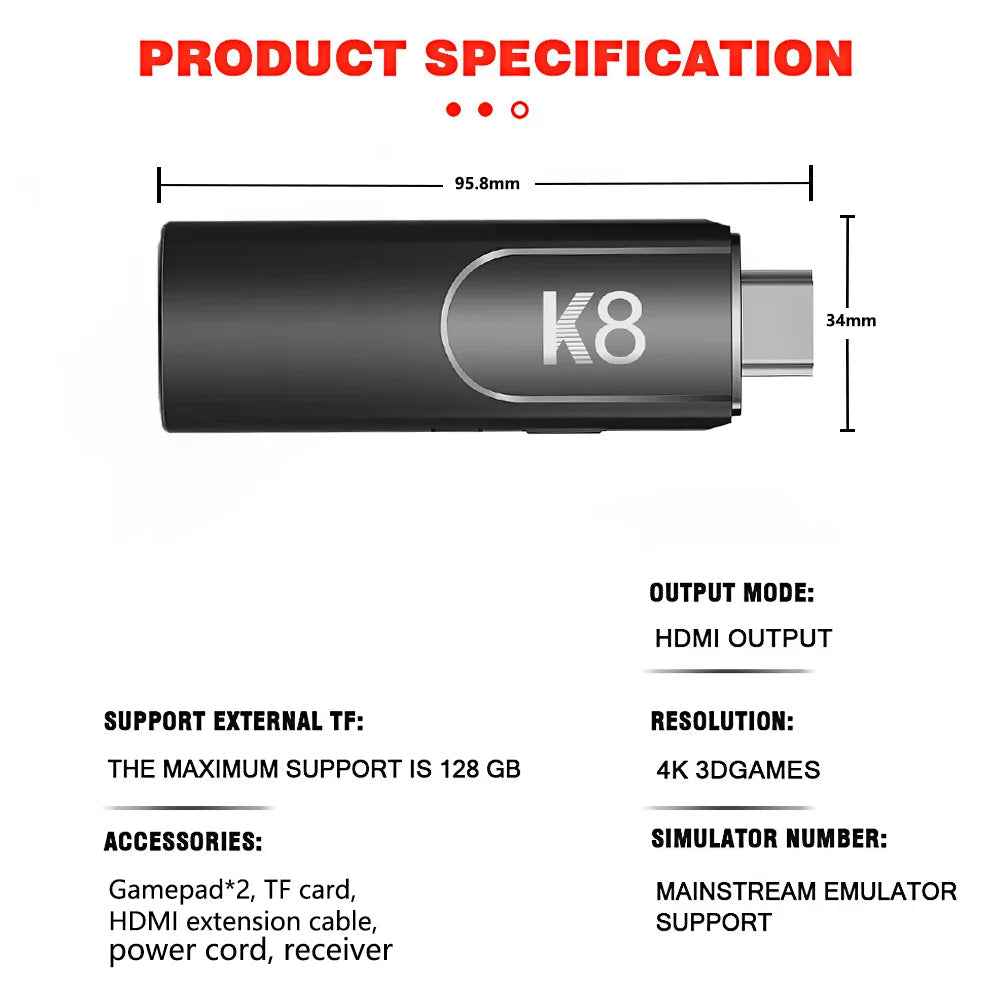 The Game Stick is a compact 4K HD retro console preloaded with over 40,000 classic games and 40+ emulators.
