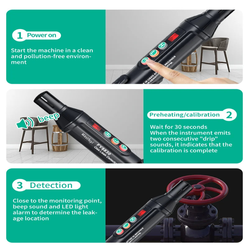 The FY8830 Gas Leak Detector is a reliable tool for detecting natural gas, LPG, and other combustible gases.