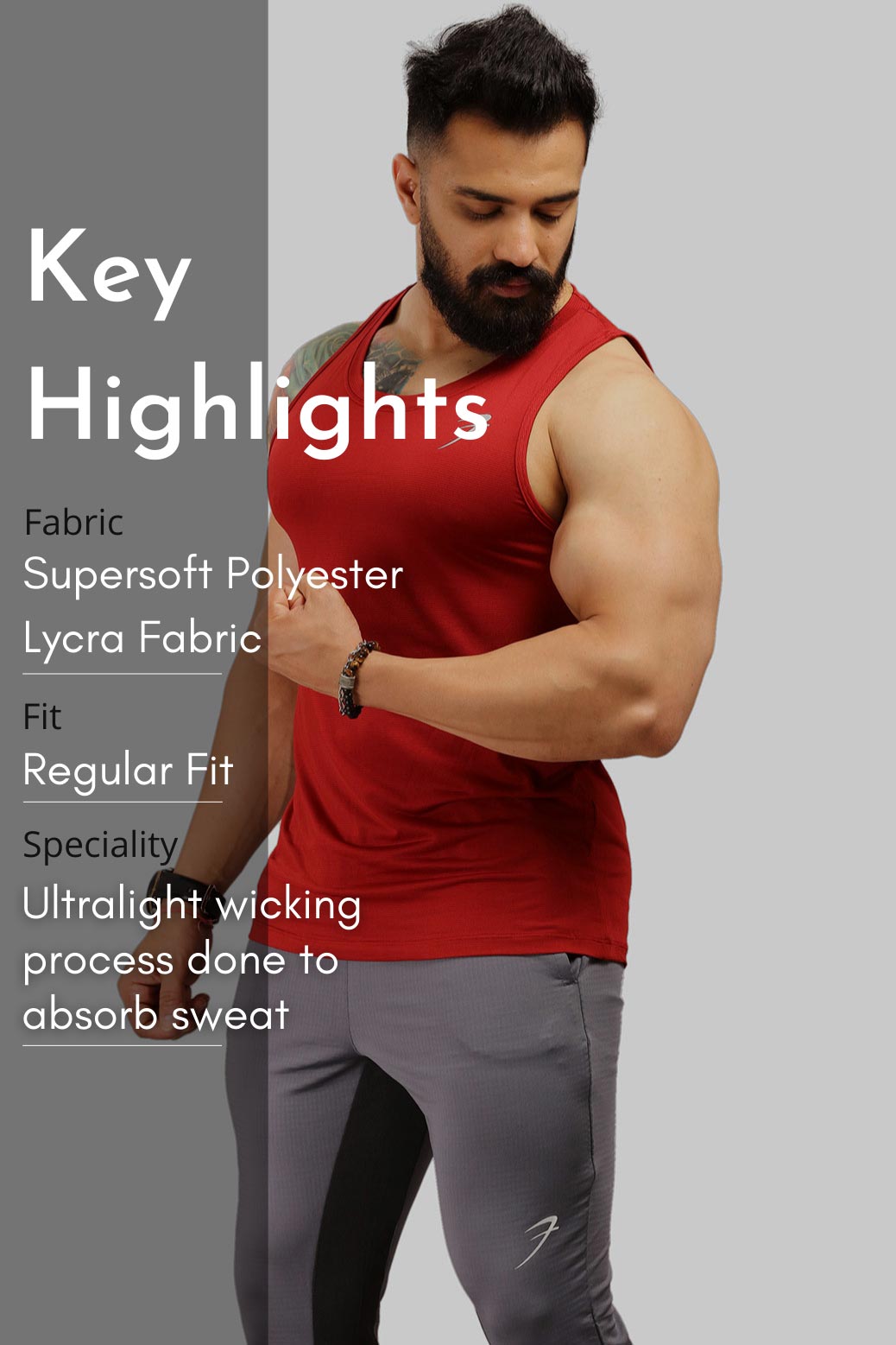 Fuaark Ultra Light Sweat Absorbing Tank - Maroon (Regular Fit, Sweat-Wicking)
