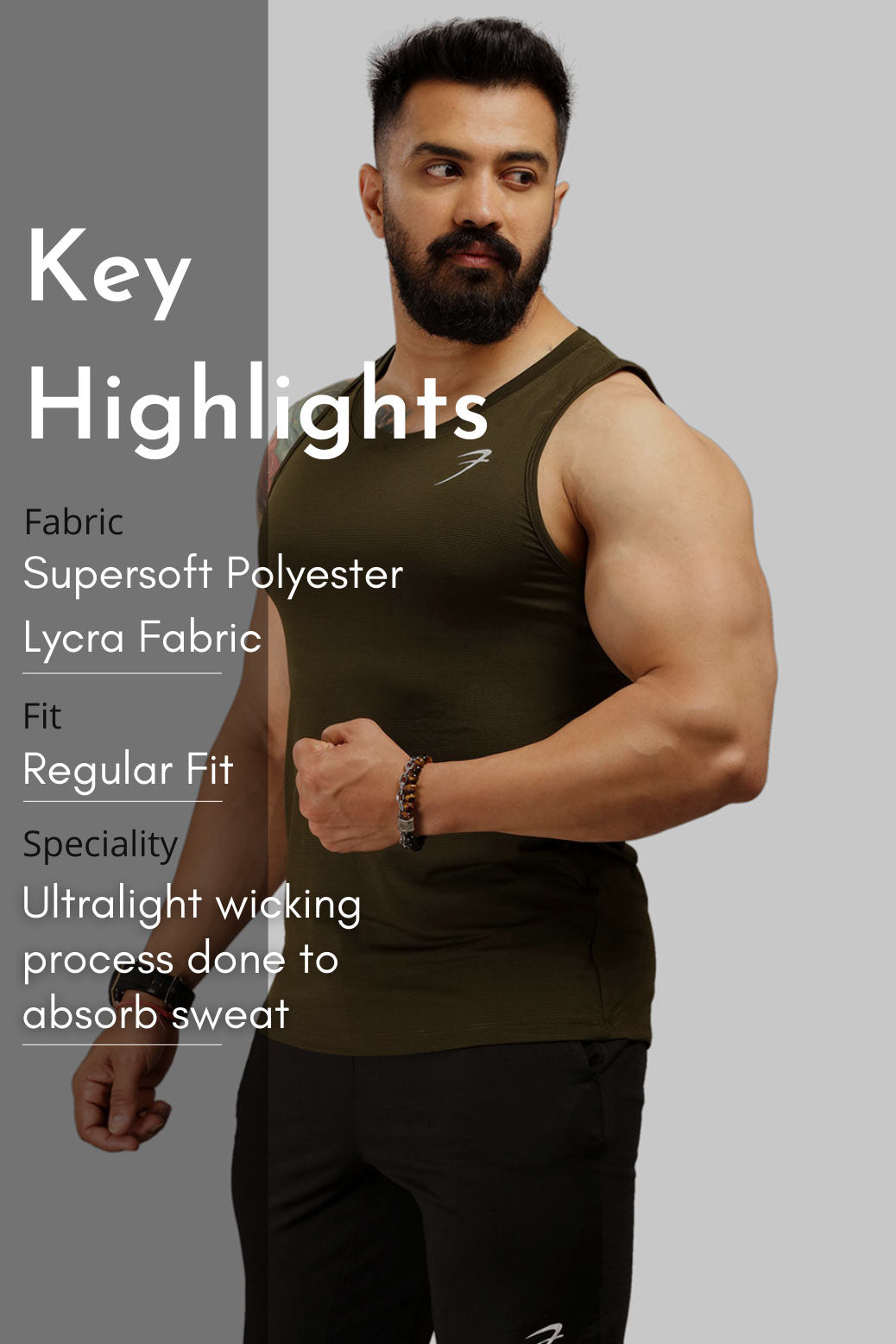 Fuaark Ultra Light Sweat Absorbing Tank - Olive (Regular Fit, Sweat-Wicking)