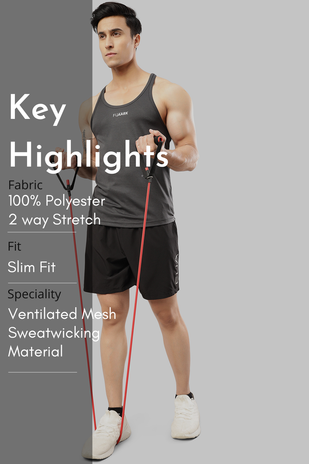 Power through your workouts with the Fuaark Mesh Stringer in Dark Grey. Featuring a steeped hemline design and tapered fit, this stringer offers a modern, athletic silhouette that moves with your body. The cool-to-touch fabric ensures you stay comfortable during even the most intense workouts, while the lox cut neckline and open razor back provide enhanced ventilation. The mesh material offers superior breathability, keeping you dry as you push yourself to the limit.
