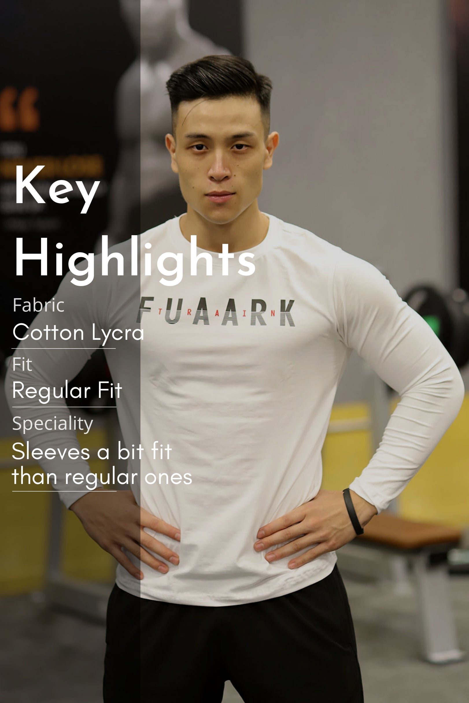 Introducing the Peak Full Sleeve T-shirt in White, designed for the modern individual who values both style and comfort. This t-shirt features a body fit design that perfectly contours to your body, providing a sleek, athletic look. Made from high-quality 200gsm cotton, it offers a soft, breathable feel that keeps you comfortable all day. The perfect fit from shoulders to arms ensures that the t-shirt hugs your body in all the right places, accentuating your physique while allowing full range of movement. Whether you're working out, running errands, or just looking for a casual yet polished look, this white full sleeve t-shirt is the ideal addition to your wardrobe.