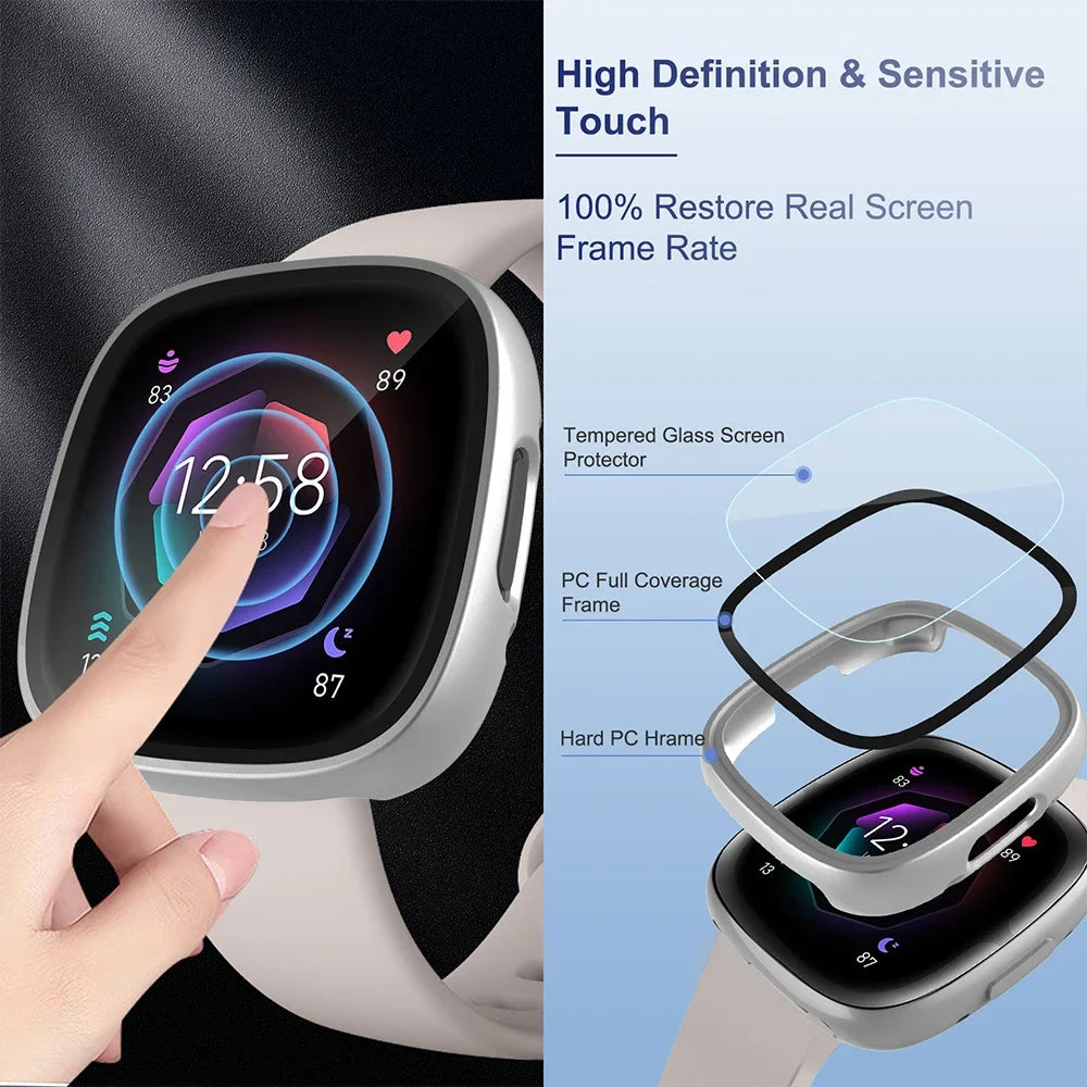 Give your Fitbit Sense 2 the ultimate protection with this Hard PC Bumper Case featuring built-in HD tempered glass screen protection.