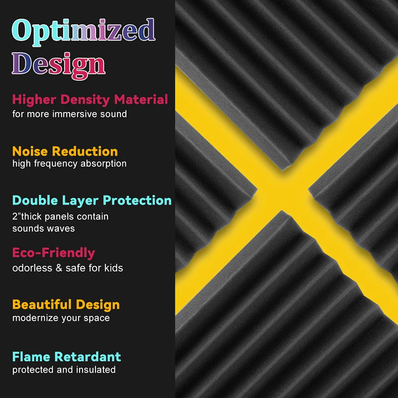 Transform your space into a peaceful, high-quality audio environment. These soundproof foam panels not only reduce echoes and unwanted noise but also create a calm and focused atmosphere—perfect for home studios, offices, bedrooms, or entertainment areas.