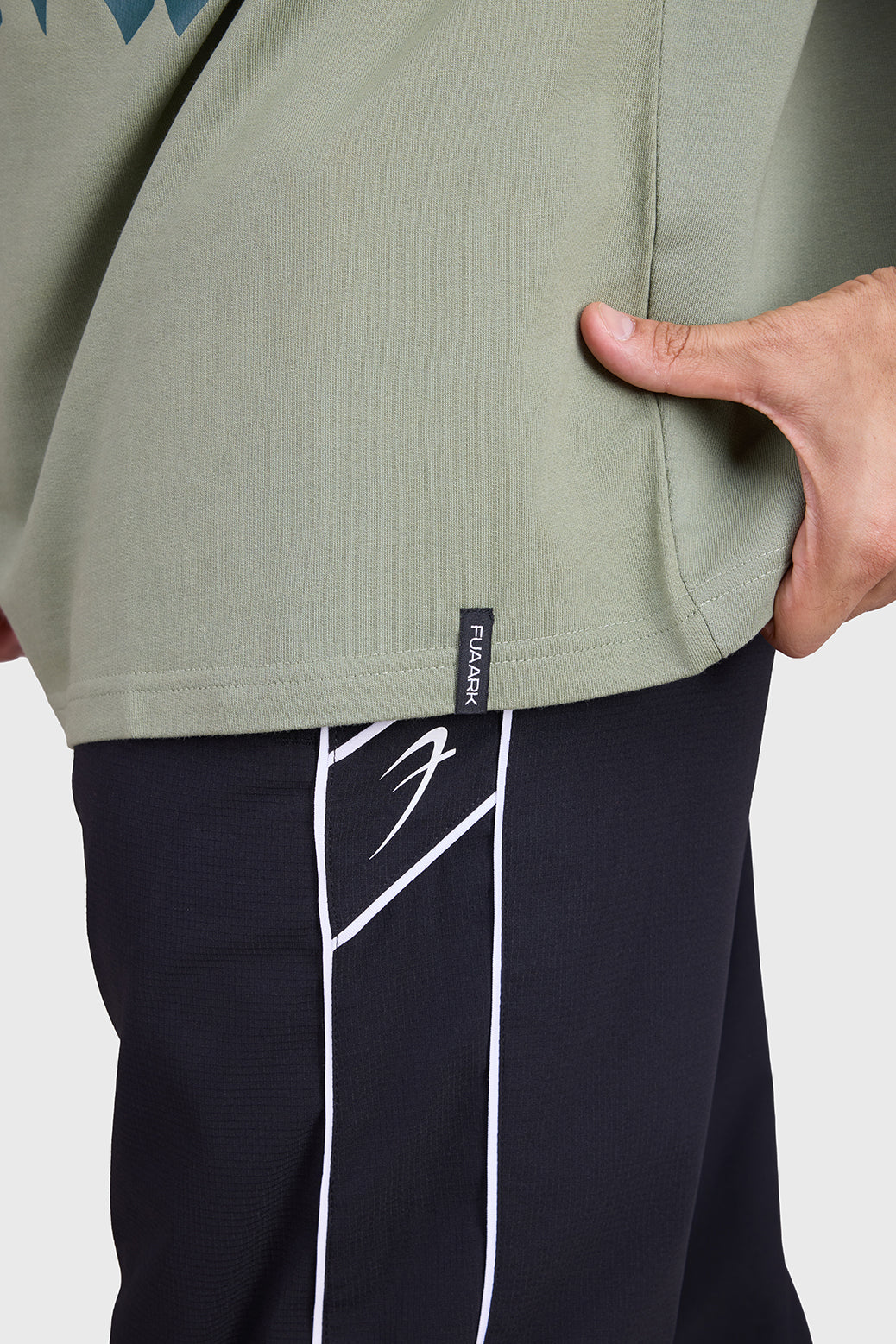 Featuring branded tag labels on the left bottom, this t-shirt effortlessly combines functionality with style. Whether you're dressing it up with accessories or keeping it casual with your favorite jeans, the sage green hue adds a fresh pop of color to any outfit.