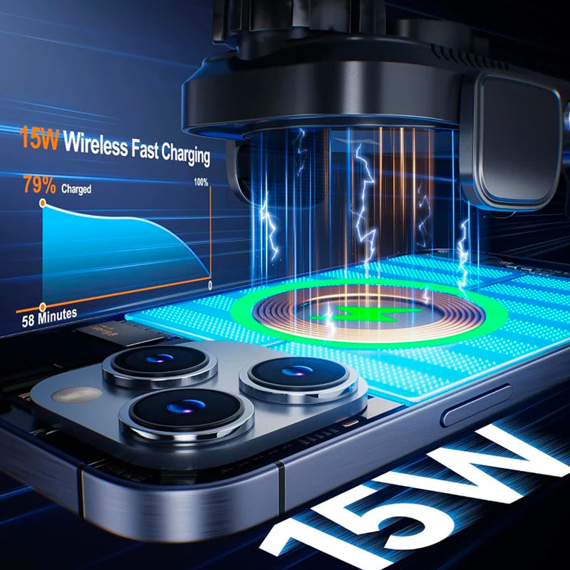 The Manual Clamp Wireless Car Charger combines fast charging with secure mounting for your smartphone.