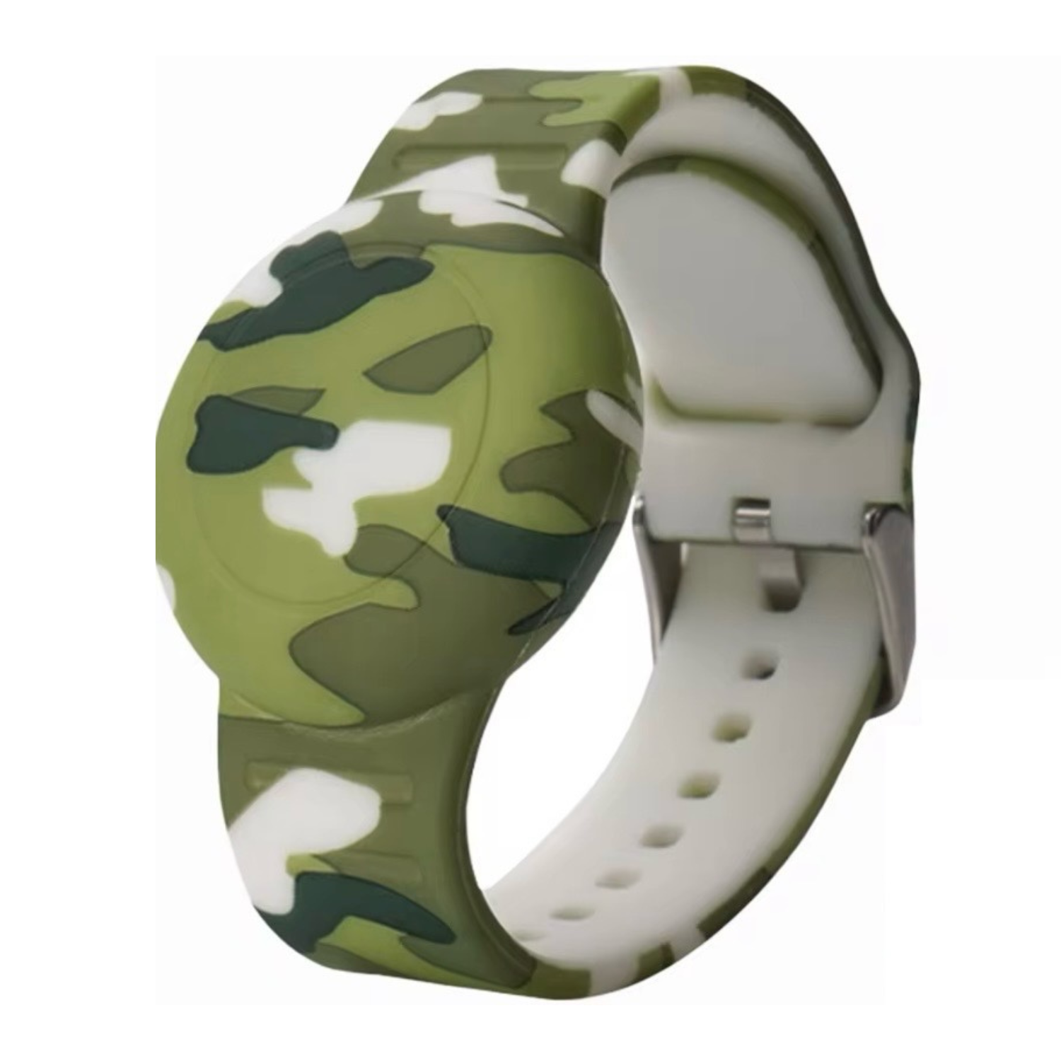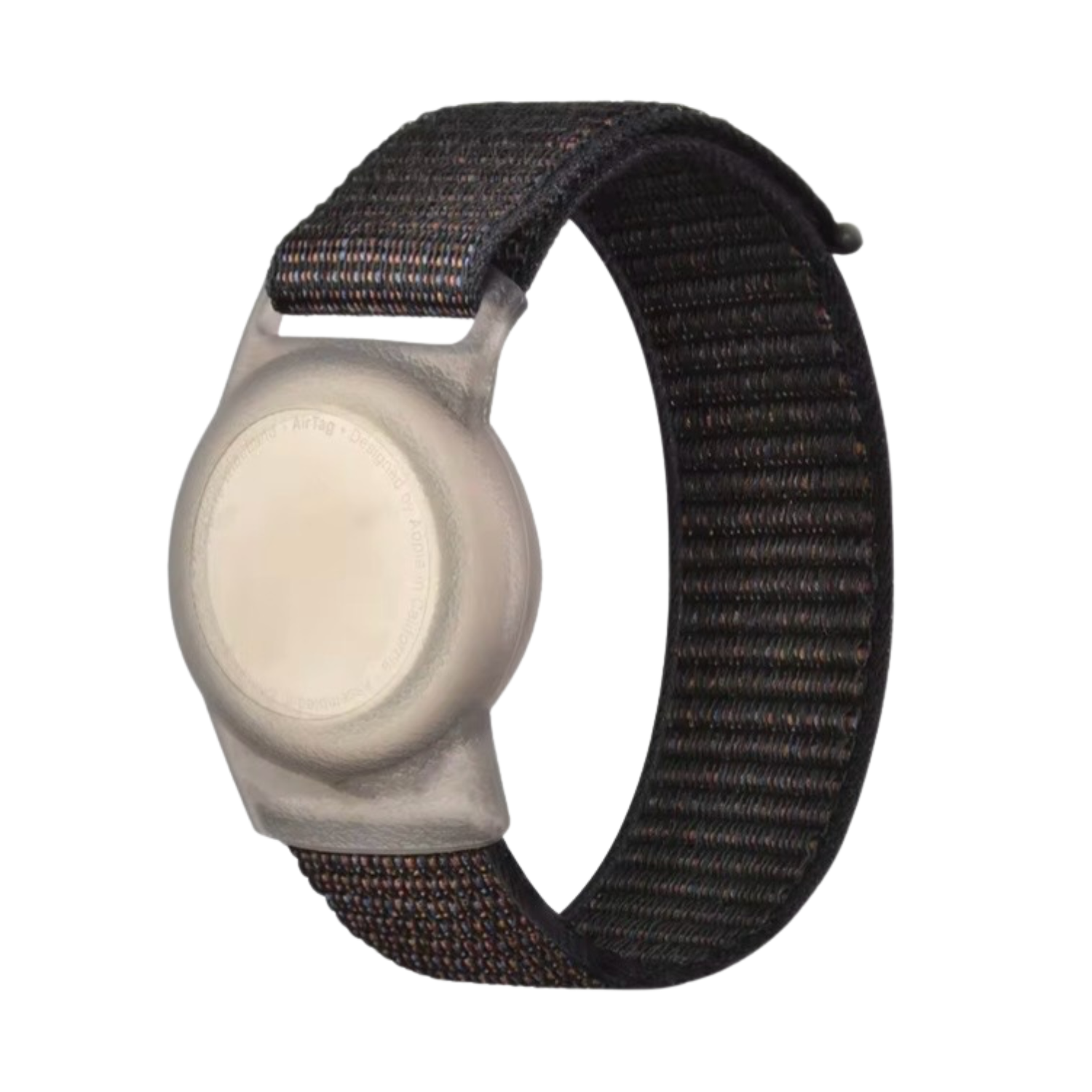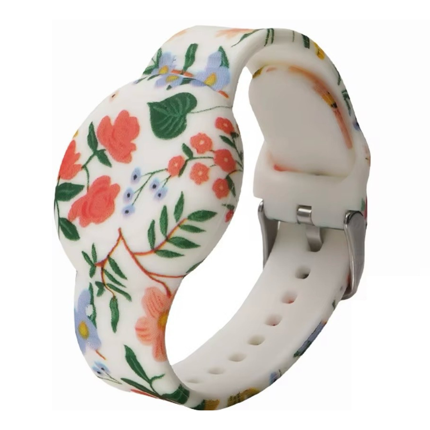 The hidden compartment protects and conceals the Air Tag, while the printed silicone band adds a playful touch.
